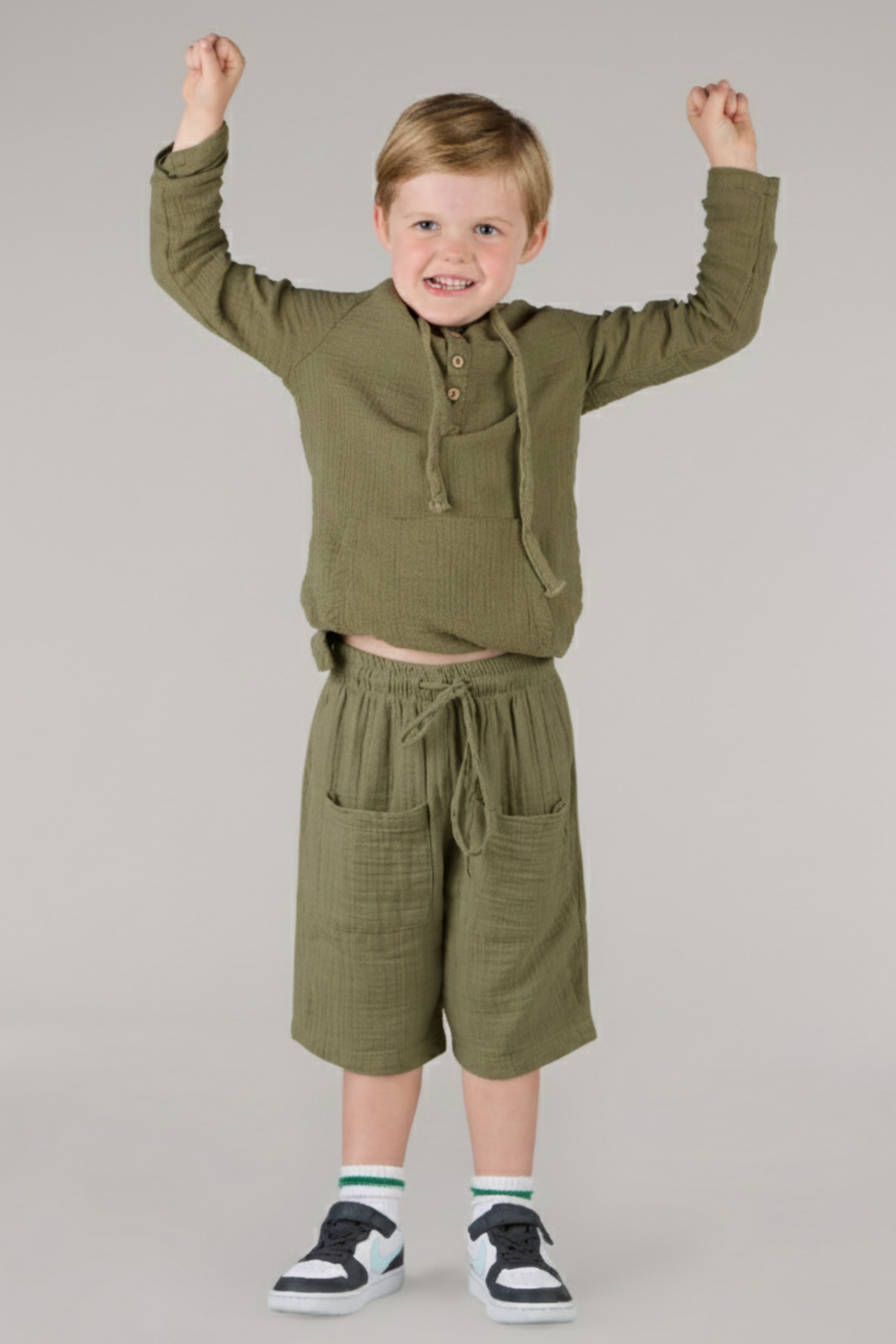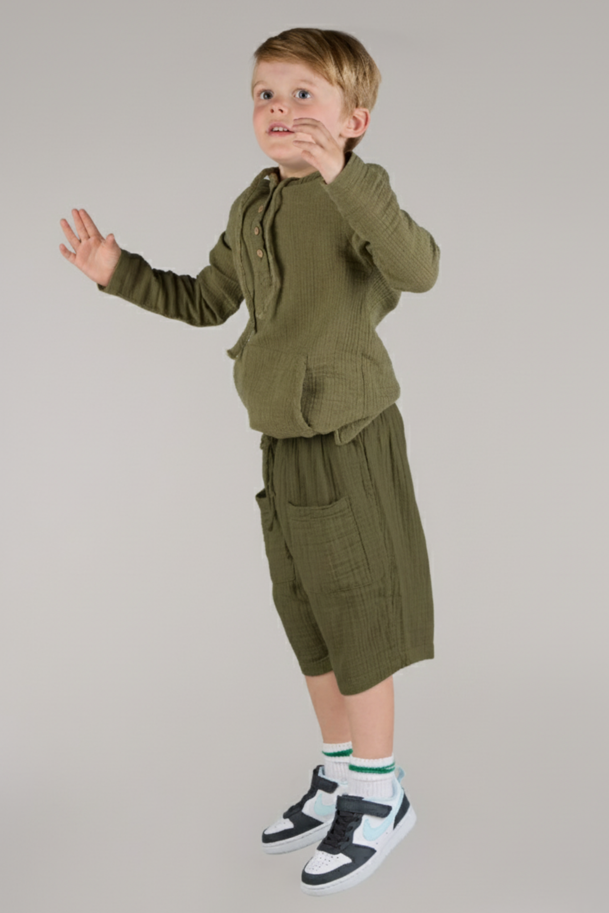 - Designed for unrestricted movement, perfect for school, casual outings, or outdoor play