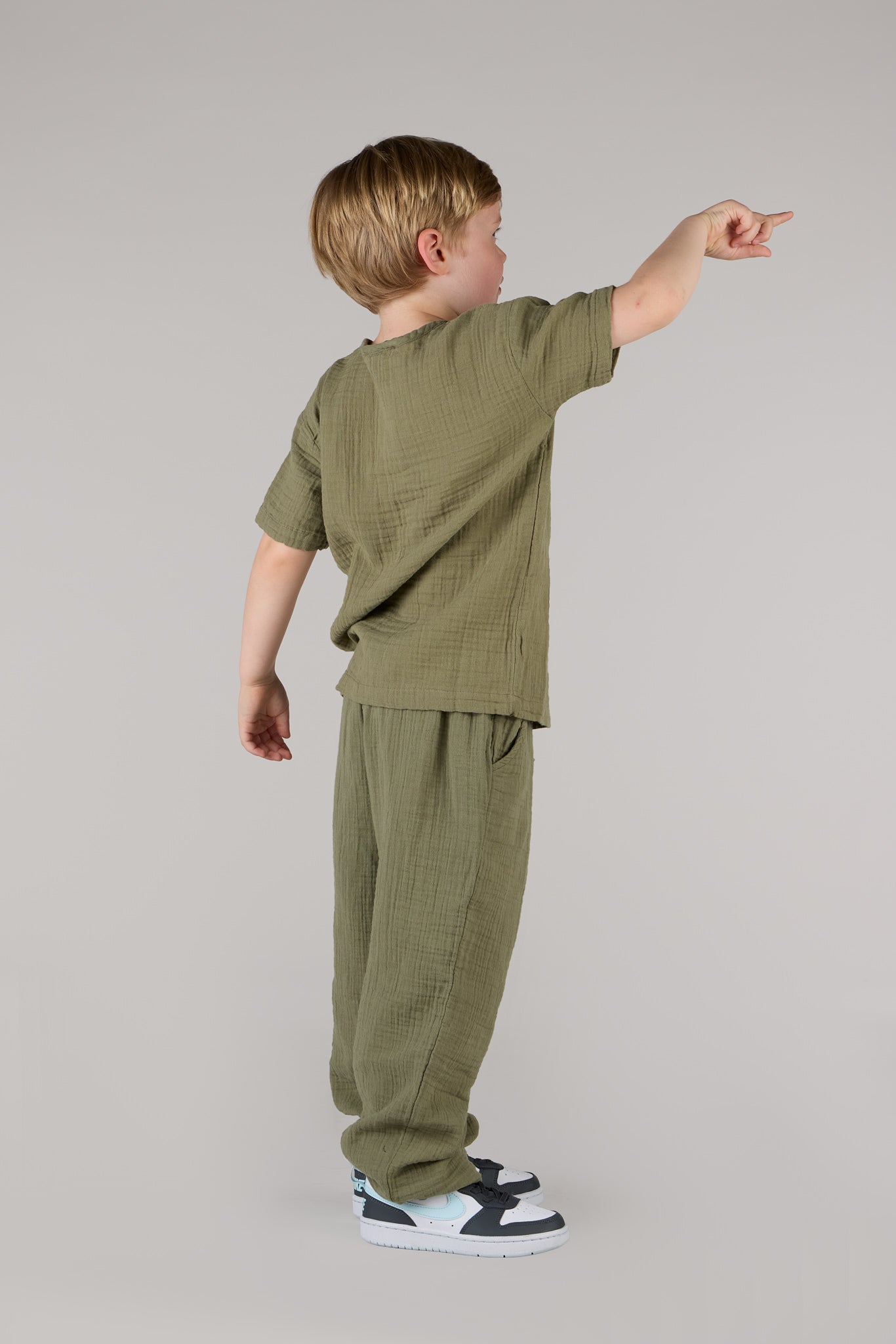 Keep your little one feeling fresh and stylish on a summer’s day with our cotton t-shirt for boys. Made from 100% fine cotton, this tee will feel comfortable and light all day long. Featuring a drawstring, lace-up design at the front, this tee is a modern classic for fun days in the sun.