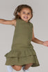 The Kids River Dress in Indigo is a charming and lightweight piece designed for both comfort and style, Crafted from 100 % soft cotton, this dress features a relaxed fit with a sleeveless design and a subtle V-neckline. The layered ruffle hem adds a playful touch, making it perfect for any occasion, from casual outings to special events. The olive color offers a timeless and versatile appeal that pairs beautifully. Thoughtfully made to prioritize sustainability and comfort, this dress is gentle on your child's skin and the environment.