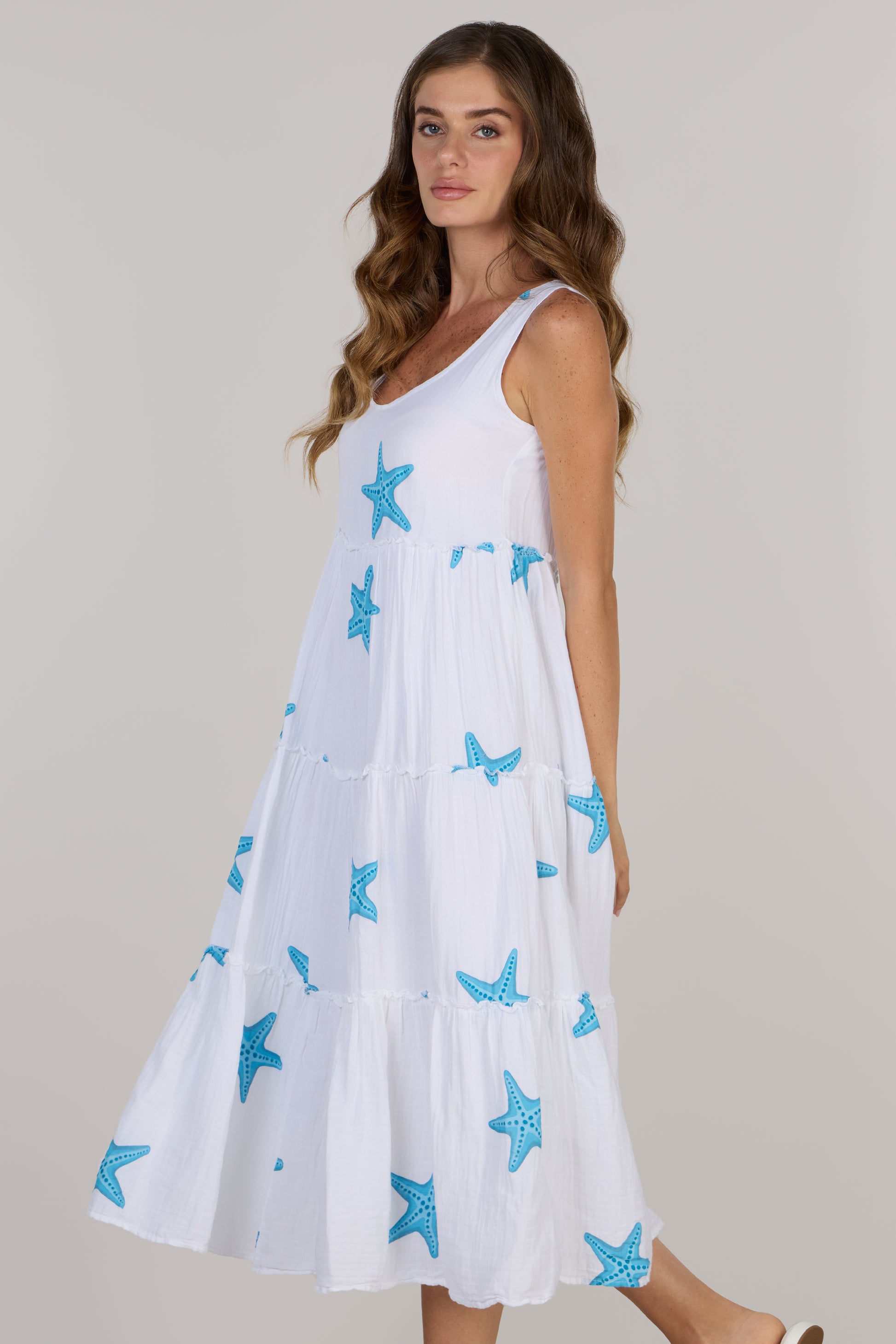 - Sleeveless cut keeps the look light and airy
