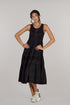 - Sleeveless cut paired with a softly flared skirt for fluid movement