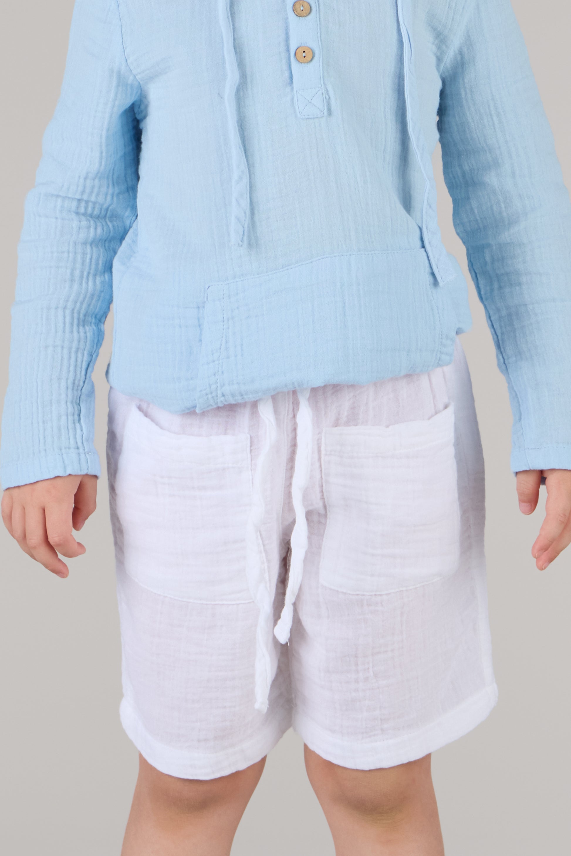 Kids' double cotton shorts are a comfortable and durable pair of shorts made from two layers of soft cotton fabric. The use of double cotton ensures extra breathability and strength, making them ideal for active kids. These shorts are typically lightweight and have an elastic waistband for a secure fit. The soft cotton material is gentle on the skin, and the extra layer provides added durability for everyday wear, play, or sports. Available in a variety of colors, patterns, and sizes, these shorts are both functional and stylish for warm-weather activities. Perfect for school, casual outings, or outdoor play, they offer flexibility and comfort without compromising on style.