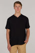 Short-sleeved resort shirt with half-buttoned henley neckline.