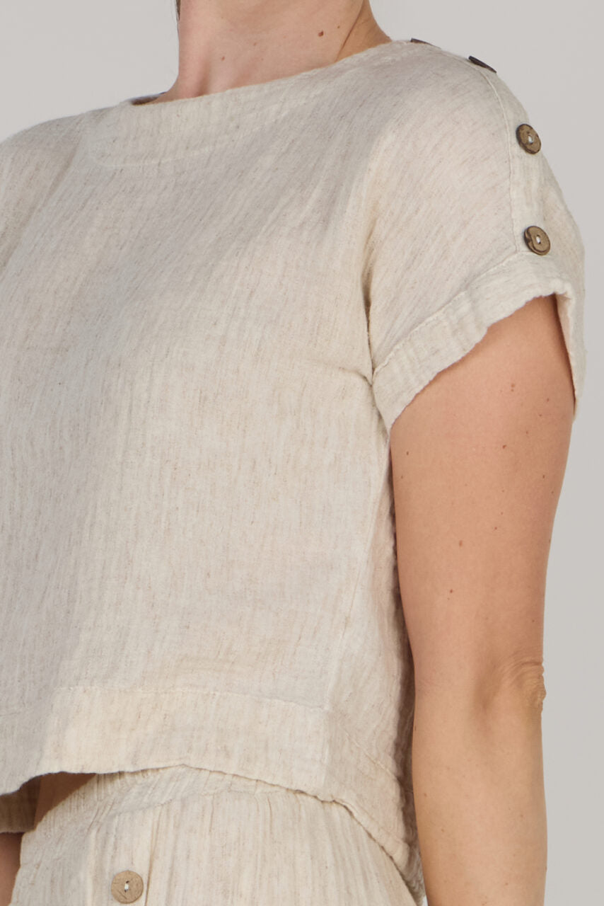 This stylish crop top offering a comfortable and breathable fit for any casual occasion. The cropped design adds a trendy flair, making it a versatile wardrobe essential for warm weather.