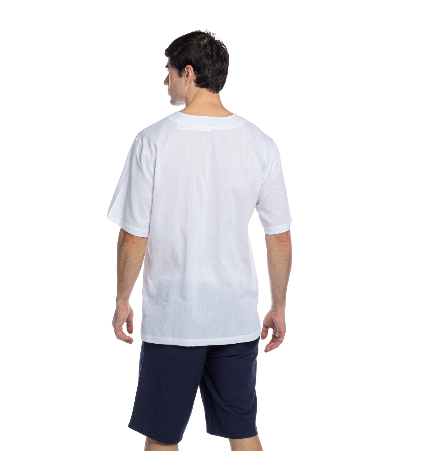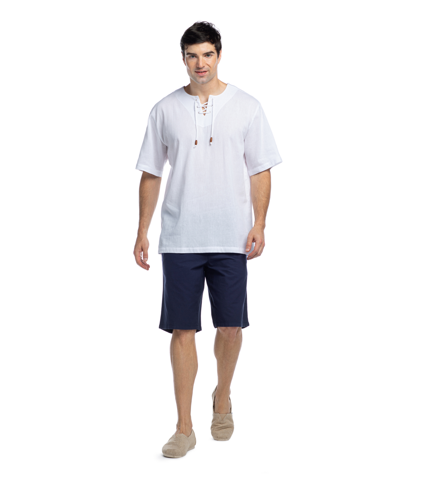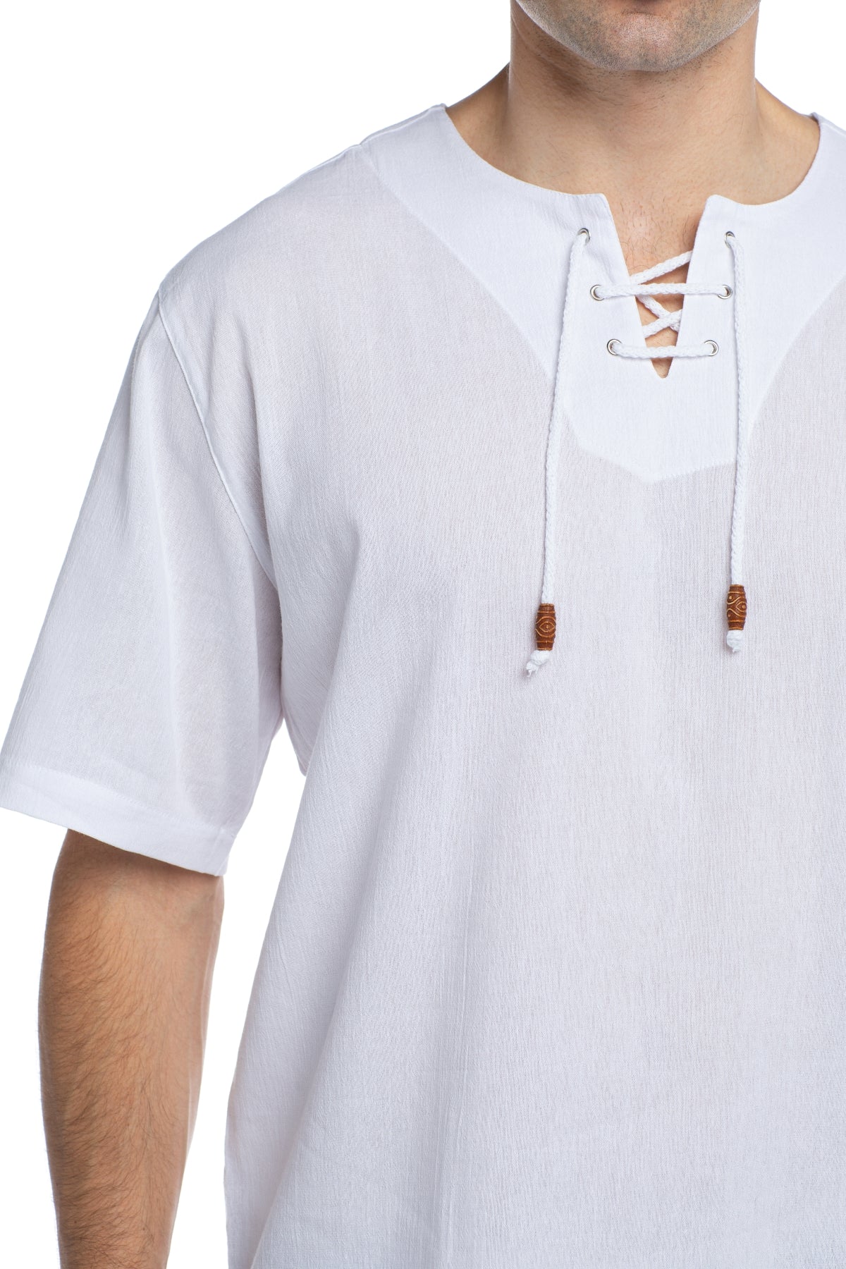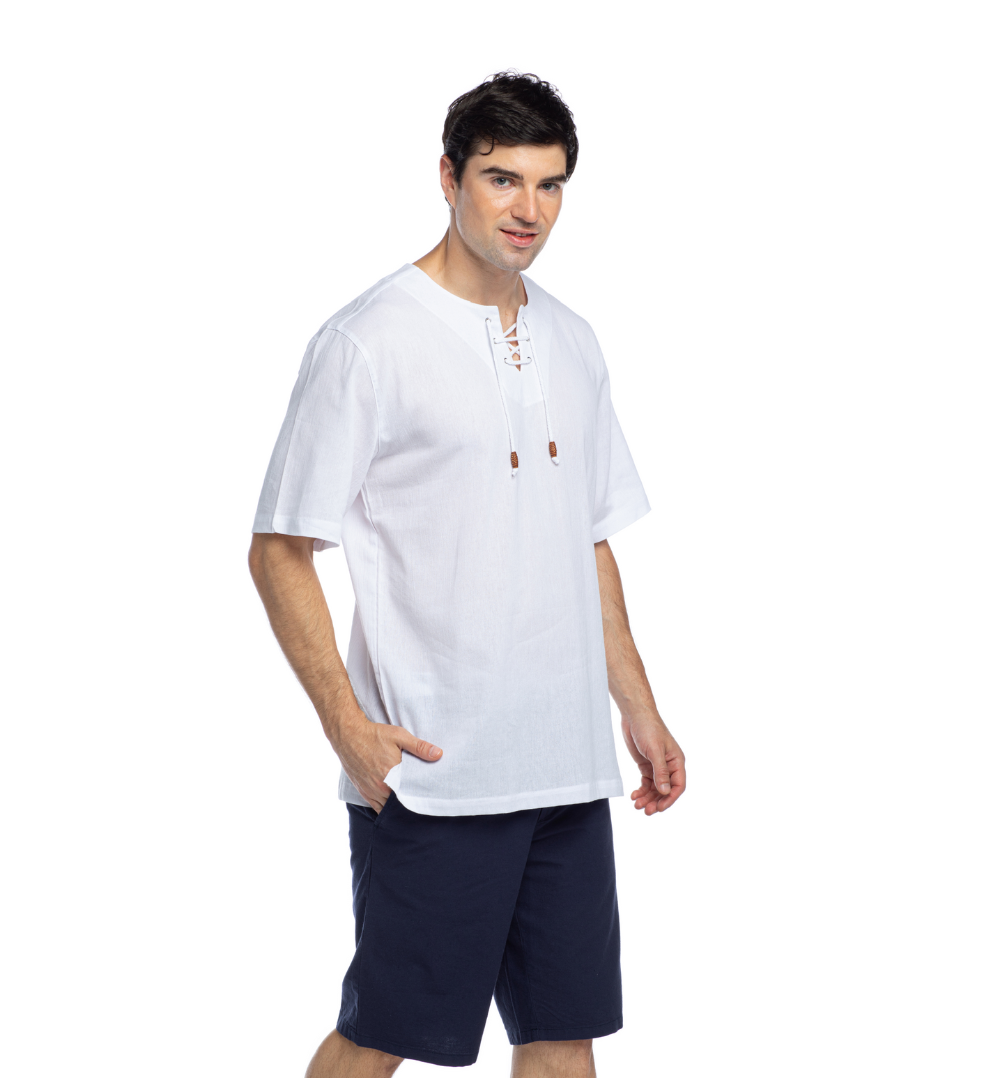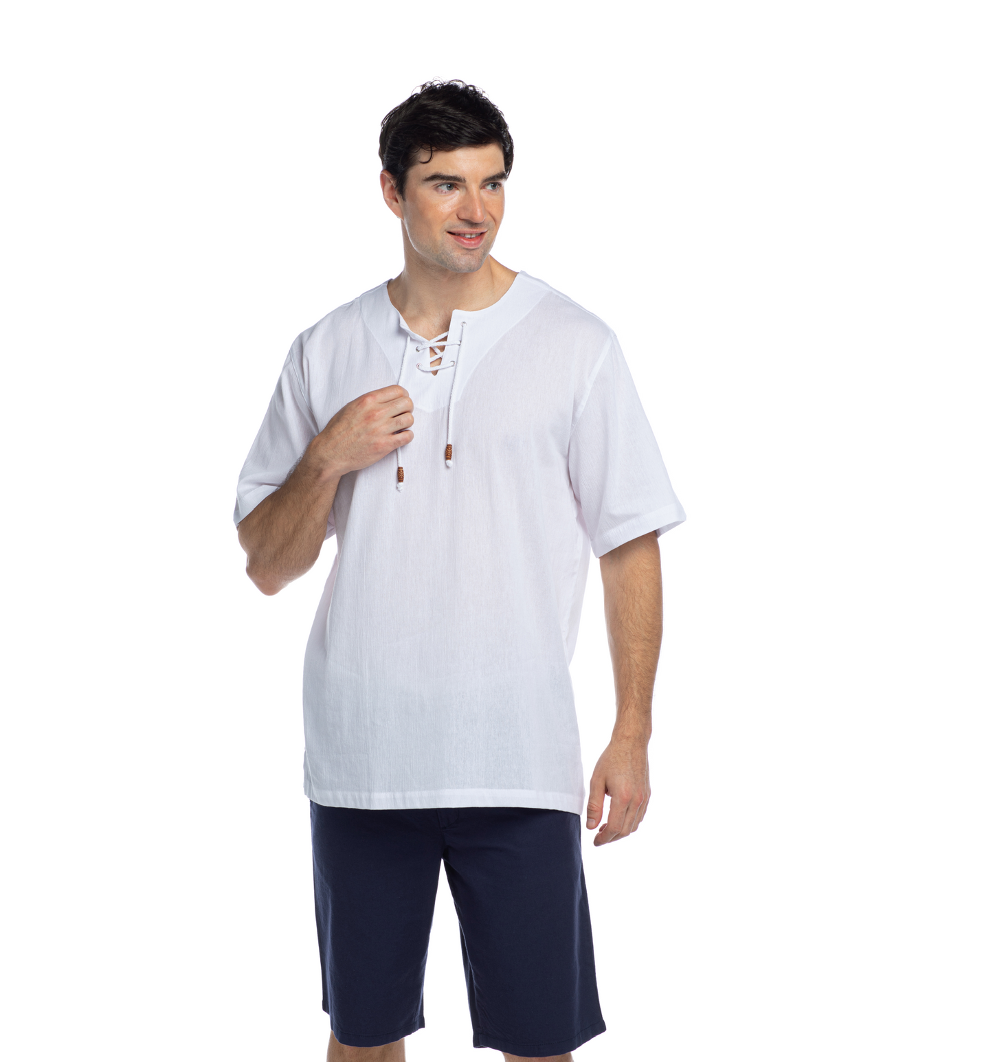 Fresh, stylish, and crisp white, our short sleeve crew neck tee for men is a summer classic wardrobe essential. Featuring a drawstring, lace-up design at the front, this white tee is a modern classic for fun days in the sun.