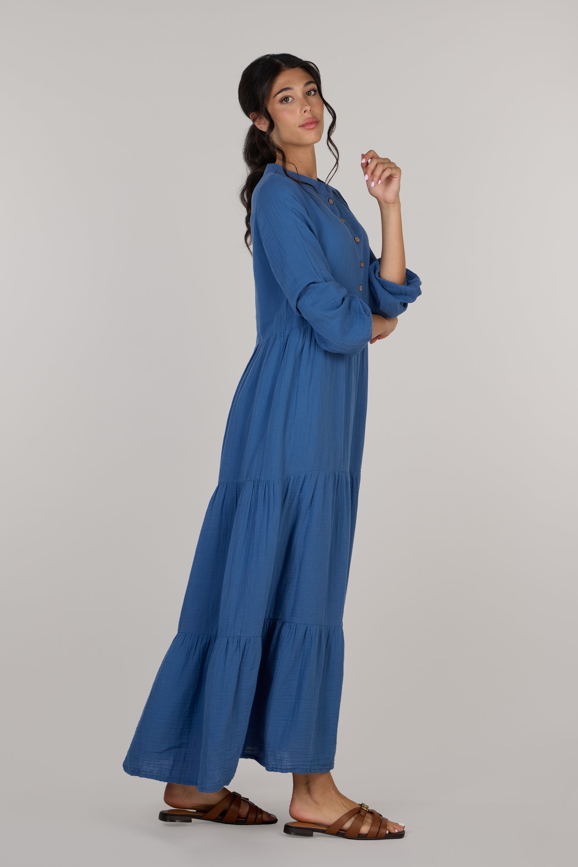 Изящное и выразительное платье Irina сочетает в себе непринужденный А-образный силуэт и очарование ручной работы, создавая образ неторопливой элегантности.